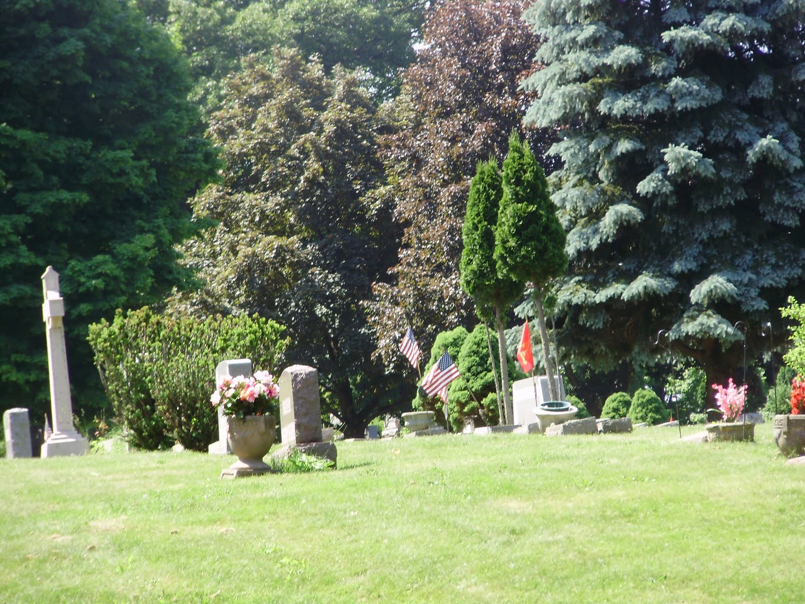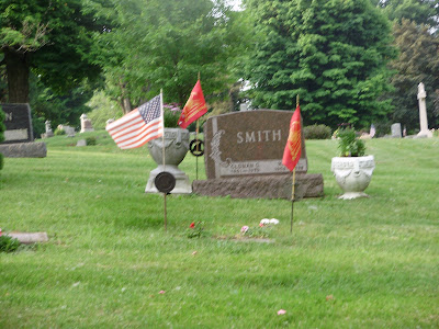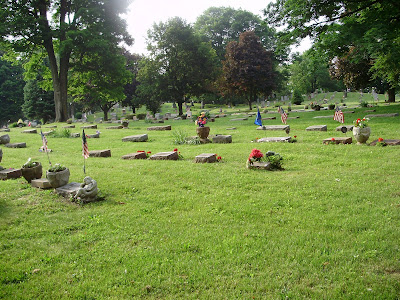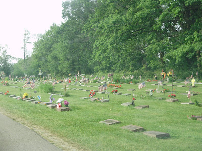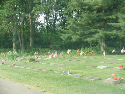 The cemetery is awash in flags. The American Legion places them on the graves of veterans every year.