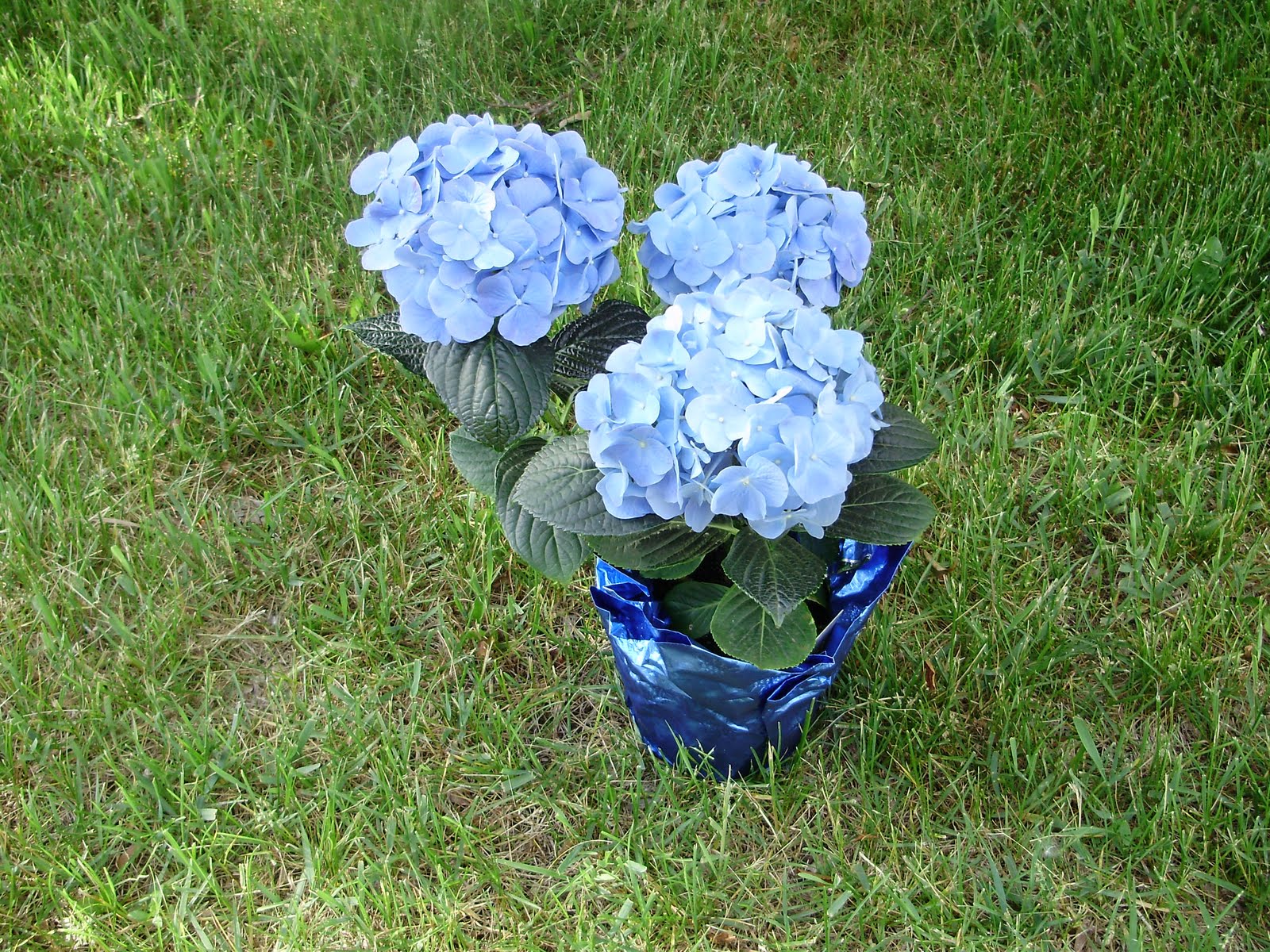 Of course, I had to connect with Mr. Google this afternoon to learn how to care for it. I discovered that I have to feed it aluminum. Too little aluminum in the soil means pink blooms.