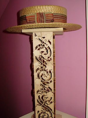 Sissy — The stand is made from scraps from parkay flooring from a factory in the UP. A nun up there came up with the idea. As often happens, people would come to their church for temporary help — rent, gas money, bills, etc. Rather than just give them a “hand-out”, she and some volunteers took the flooring pieces and assembled kits to make these stands in various sizes. The people would then make the stands to get the money they requested. Those of us who bought the stands were essentially the funders for the people in need. In the end, everybody wins. The dignity of individuals remained intact and the scraps were put to good use.