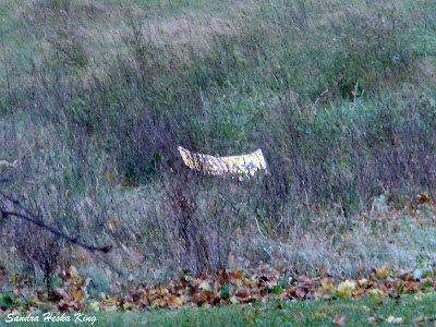 The birds are strangely silent except for a jay’s squawk from the woods on my left and a crow caw from across the field on my right. A lone goose flies overhead.