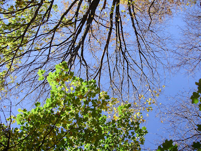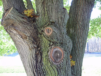 I feel the need to lie down under the tree in the front yard. I hold my camera aloft so those in passing cars don’t stop to offer assistance or call 911. The leaves brush my cheeks and cling to my hair. I note how they nestle in the crooks of the branches, and I contemplate the calluses that surround the pruning scars.