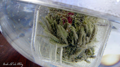 Sissy gave me some primula tea (green with fresh jasmine) for Christmas. I enjoyed a cup during yesterday’s hyacinth time. This flower is called Camellia Joy.